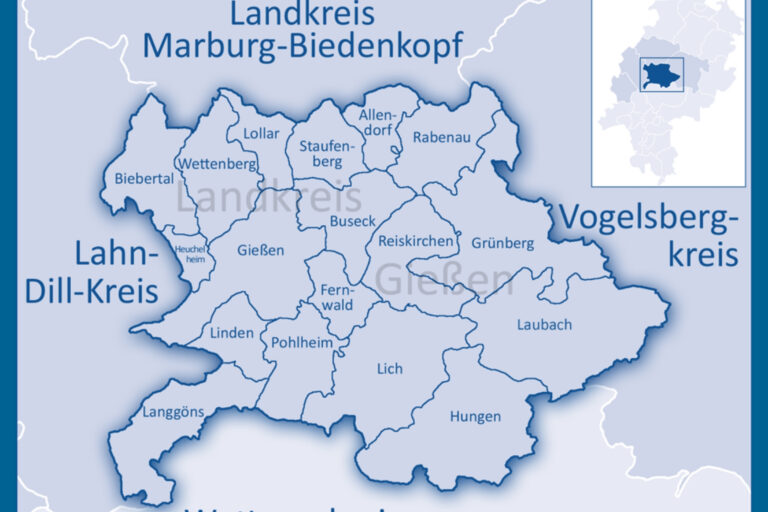 Der Landkreis Gießen liegt im Herzen Mittelhessens und vereint städtisches Leben mit ländlicher Idylle. Von modernen Wirtschaftsstandorten bis zu charmanten Fachwerkorten bietet er Raum für Innovation und Lebensqualität. Natur, Bildung und ein starkes Miteinander prägen das Bild dieser vielfältigen Region.