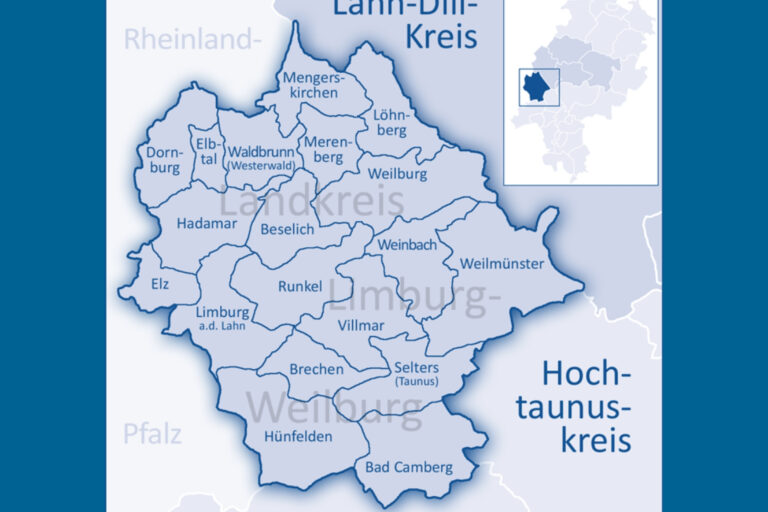 Im Süden Mittelhessens gelegen, verbindet der Landkreis Limburg-Weilburg Tradition, Kultur und wirtschaftliche Stärke. Die Stadt Limburg mit ihrem berühmten Dom ist kulturelles Zentrum und Verkehrsknotenpunkt gleichermaßen. Nah am Rhein-Main-Gebiet lässt es sich hier ausgesprochen gut leben, arbeiten und genießen.