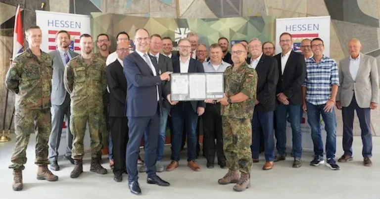 Gießen. 18 gerahmte Urkunden gab es am Hauptsitz des Regierungspräsidiums (RP) Gießen zu verteilen. Sie gingen an Unternehmen, Institutionen und Behörden. Darauf zu lesen stand: „Partnerschaft für den Reservedienst“. Verteilt wurden die Urkunden gemeinsam von Hausherr und Regierungspräsident Dr. Christoph Ullrich sowie Oberst Jürgen Marx, Leiter Bezirksverbindungskommando Gießen.