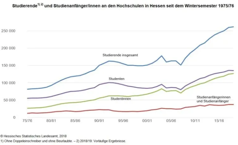 aufgrund vorläufiger Meldungen der Hochschulen mitteilt, ist die Zahl der Studierenden um 1700 oder 0,7 Prozent höher als im Wintersemester 2017/18.