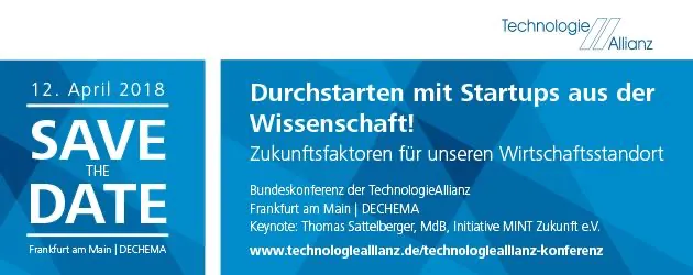 aus der Wissenschaft! Zukunftsfaktoren für unseren Wirtschaftsstandort“ am 12. April 2018 in Frankfurt a.M. bei der DECHEMA e.V. stattfindet.