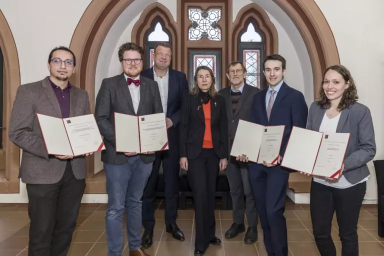 Bei einer Feierstunde im Marburger Landgrafenschloss nahmen die Begünstigten am Dienstag, den 24. Januar 2023, ihre Förderurkunden aus den Händen des Stiftungsvorstands entgegen. „Fortschritte in der medizinischen Forschung werden in vielen kleinen Schritten erkämpft, die zum Verständnis schwerer Erkrankungen beitragen“, sagte Dr. Lars Witteck, Präsident der Von Behring-Röntgen-Stiftung. „Das erfordert neben Erfindergeist den Mut zur Innovation und Durchhaltevermögen. Mit unserer Unterstützung wollen wir jungen Forschertalenten ihren Weg in die Spitzenforschung von morgen ebnen“, verdeutlichte er die Ziele der in Marburg ansässigen Von Behring-Röntgen-Stiftung. Die Projekte der Marburger Dr. Niklas Gremke, Dr. Lena Cook und Prof. Dr. Hamidreza Jamalabadi sowie des Gießeners Benedikt Dörflinger starten im Januar 2023. Ihre Forschungsvorhaben wurden aus fast 40 Vorschlägen ausgewählt, die bei der Von Behring-Röntgen-Stiftung in der aktuellen Förderrunde eingereicht wurden. Drei Jahre haben die jungen Forschenden Zeit, um ihre Ziele zu verwirklichen.