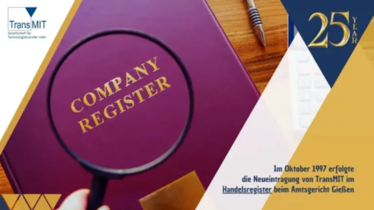 Gießen, 17. Oktober 2022 – Die TransMIT Gesellschaft für Technologietransfer mbH feiert in diesem Jahr ihr 25-jähriges Gründungsjubiläum – offiziell ins Leben gerufen wurde die TransMIT mit dem Eintrag ins Handelsregister im Oktober 1997. Bereits im Jahr zuvor verständigten sich die mittelhessischen Hochschulen, Volksbanken und Sparkassen sowie der IHK Gießen-Friedberg als erste Gesellschafter auf die Gründung des neuen Gemeinschaftsprojekts. Schon zehn Jahre später belegte die TransMIT im Rahmen einer seinerzeit vom Bundesministerium für Bildung und Forschung in Auftrag gegebenen Evaluierung den ersten Platz im Ranking der deutschen Patent- und Verwertungsagenturen. Seitdem hat sich diese erfreuliche Entwicklung unvermindert fortgesetzt. Heute erschließt und vermarktet die TransMIT im Schnittfeld von Wissenschaft und Wirtschaft mit rund 150 Angestellten das Innovationspotenzial zahlreicher Wissenschaftler aus mehreren Forschungseinrichtungen in und außerhalb Hessens und setzt so die wissenschaftlichen Ergebnisse insbesondere der Hochschulen in Zusammenarbeit mit Industrieunternehmen in Produkte und Dienstleistungen um.