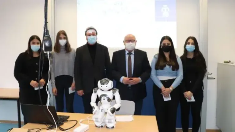 Die praktische Grundlage für den Unterricht bilden humanoide Roboter, die mit dem Software-Programm Choregraphe gesteuert werden. In mehrtägigen Schulungen werden Schülerschaft und Lehrkräfte der weiterführenden Schulen in der Programmierung der Roboter geschult, erlernen Problemlösungsstrategien zu entwickeln und verbessern so algorithmische und logische Denkprozesse. Im Rahmen des Projektstarts zeigten vier Schülerinnen des Johanneum Gymnasiums, wie die praktische Arbeit der Jugendlichen aussehen wird: Sie hatten in zwei Übungstagen eine Unterhaltung für den Roboter programmiert.