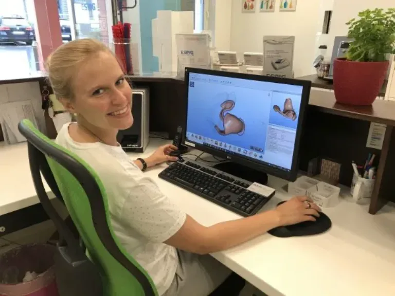 Ich hatte dort ein Fachgespräch, bei dem ich ein Beratungsgespräch halten musste. Dort musste ich vorstellen, welche Hörgeräte es gibt und was ihre technischen Besonderheiten sind und dann musste ich auf einen Kundenfall bezogen beraten. In meinem Fall war mein Prüfer mein Kunde und ich hatte einen Anamnesebogen, zu dem ich das passende Hörgerät auswählen sollte. Zu dem Hörgerät wurden mir dann noch Fragen gestellt. Ich musste ein Programm für jedes Hörvermögen, jede Technologiestufe und jede Kostenstufe vorbereiten. Das musste dann auf den Kunden zugeschnitten werden und da musste ich mich mit den drei Herstellern, die es gibt, sehr gut auskennen. Das hat insgesamt 30 Minuten gedauert. Insgesamt habe ich fünf praktische Prüfungen abgelegt. Ich musste auch noch eine Hörmessung machen und hatte eine Fräsprüfung. Die Prüfung nennt sich mittlerweile „Dreidimensionale Abbilder“, weil wir zwar noch fräsen, aber bald wird es nur noch am PC modelliert. Die Abformung, die man am Kunden oder an der Kundin nimmt, wird mithilfe eines 3D Scanners eingescannt und dann kann am PC in einem 3D Modell das Ohrstück modelliert werden. Anhand der Anatomie der Ohrmuschel können die verschiedenen Formen daraus gemacht werden. Das wird dann im Labor am 3D Drucker gedruckt und dann kommt es zurück und wird weiterbearbeitet. In der Berufsschule wird irgendwann wahrscheinlich nur noch am PC modelliert. Eine weitere Prüfung war das Nehmen der Abformung. Außerdem hatte ich drei schriftliche Prüfungen am Ende des letzten Berufsschulblocks. Insgesamt gibt es acht Berufsschulblöcke a drei bis fünf Wochen. Die Berufsschule befindet sich in Lübeck und dort ist man mit Menschen aus ganz Deutschland zusammen in der Schule. Am Anfang hatte ich Respekt vor der Entfernung, aber später hat man sich auf die Abwechslung vom Arbeitsalltag gefreut. Auch das Internatsleben macht Spaß und ich habe in Lübeck Freunde fürs Leben gefunden. Ich bin traurig, dass die Zeit in der Schule vorbei ist.