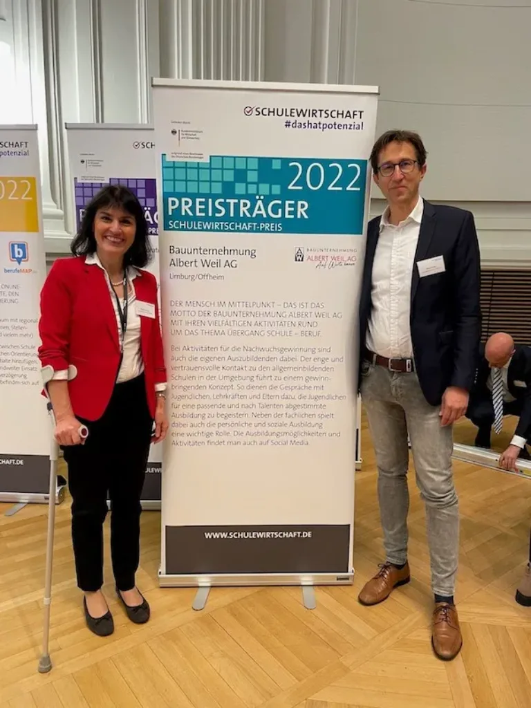 Es ist die zweite Auszeichnung in Folge an die mittelständische Bauunternehmung aus Offheim. Ebenfalls in Berlin wurde die Albert Weil AG zuvor als „AusbildungsASS“ und somit Deutschlands zweitbester Ausbildungsbetrieb in der Kategorie „Industrie, Handel und Dienstleistungen“ prämiert.
