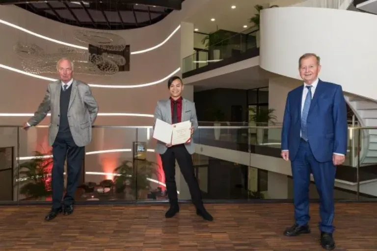 Die besondere Bedeutung der Von Behring-Röntgen-Stiftung betonte Dr. Maik Luu: „Schon während meiner Zeit als Bachelor-Student hatte ich das Glück für zwei Projekte im Rahmen des iGEM-Wettbewerbs gefördert zu werden, bei dem wir in Team-Arbeit neue Anwendungen auf dem Gebiet der synthetischen Mikrobiologie entwickelt und in Boston vor internationaler Konkurrenz präsentiert haben. Diese Erfahrungen haben den Grundstein für meinen weiteren Weg gelegt, der ohne die Unterstützung durch die Von Behring-Röntgen-Stiftung und auch die Eheleute Netter als meine Förderer nicht möglich gewesen wäre.“
