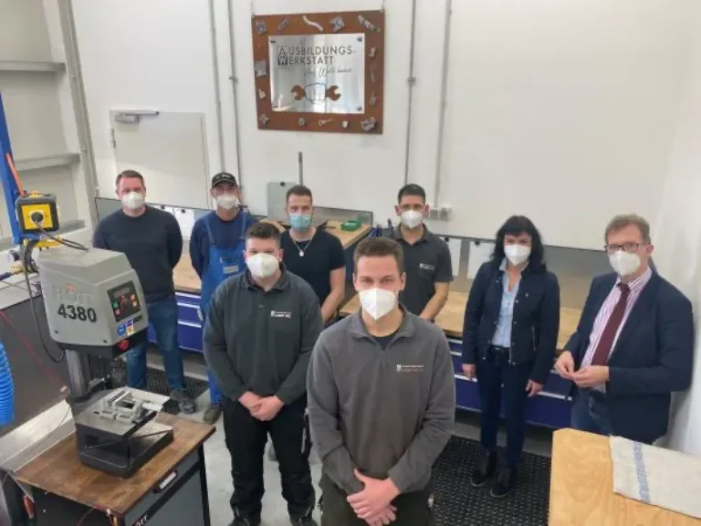 „Mit der Ausbildungs-Werkstatt steht unseren Auszubildenden nun eine einmalige und wertvolle Räumlichkeit zur Verfügung, die es ihnen ermöglicht, praktische Fertigkeiten an den Werkstücken zu erfahren, sich zurückzuziehen und so z.B. in Ruhe für ihre Prüfungen zu lernen – unter Einhaltung der aktuellen Corona-Regelungen. Für uns, als Ausbildungsbetrieb, ist dieses Projekt ein absoluter Gewinn und keine Selbstverständlichkeit. Ein Highlight ist das eigens gestaltete Logo, welches um verschiedene Lehrstücke der Azubis ergänzt wurde. Vielen Dank an die Kollegen aus der ‚Kreativ- Werkstatt‘, die dies ermöglicht haben!“, ergänzt Ausbildungsleiterin Elisabeth Schneider.