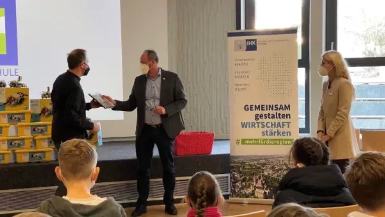 Im Dezember und Januar überreichten Vertreter der IHK Limburg 64 altersgerechte Robotik-Bausätze an vier Grund- und zwei weiterführende Schulen aus der Region Limburg-Weilburg. Ausgewählt wurden sie von einer Jury aus zwölf Bewerbungen.