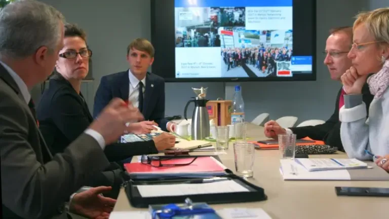 Im Rahmen der Partnerschaft zwischen dem Land Hessen und dem US-Bundesstaat Wisconsin waren heute Katy Sinnott, Vice President und Stanley Pfrang, Senior Market Development Director der Wirtschaftsförderung des Bundesstaates im Regionalmanagement Mittelhessen zu Gast. Die beiden Vertreter wurden durch Ingo Schon und Dr. Michaela Dersch-Hansmann von der Hessischen Staatskanzlei begleitet, die auch den Delegationsbesuch in Hessen organisierten. Die Gruppe informierte sich bei Regionalmanager Christian Piterek über die Wirtschaftsstruktur der Region Mittelhessen und Organisation der Wirtschaftsförderung in Hessen. Zudem wurde über mögliche Felder der Zusammenarbeit gesprochen. Insbesondere in den Branchen Pharma / Medizintechnik und Elektro gibt es Übereinstimmungen in der Wirtschaftsstruktur der beiden Regionen. Teilnehmer sprachen sich dafür aus, den Kontakt zu intensivieren.