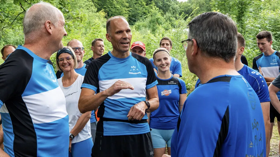 Auch sportlich war Rhein unterwegs. Beim Lauftreff des ASC Dillenburg lief er mit und kam ins Gespräch. Ohne Anzug, dafür mit Laufschuhen. Er wollte spüren, was die Menschen antreibt – im wahrsten Sinn.