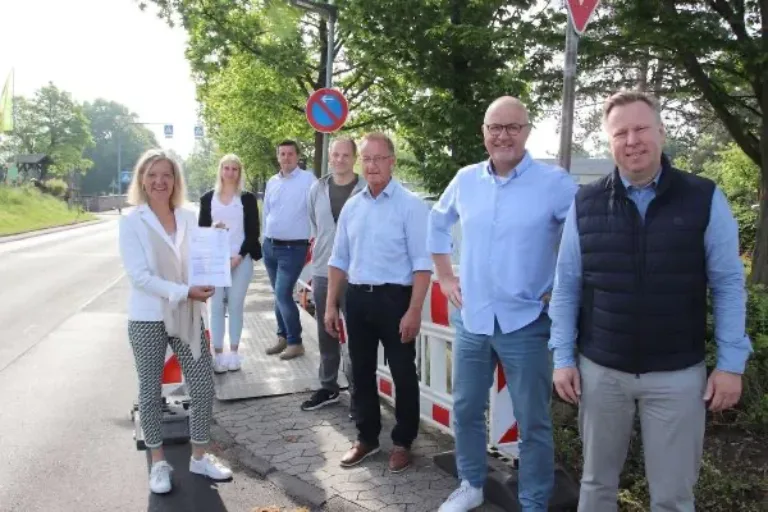 Landkreis Gießen. Lollars Bürgermeister Dr. Bernd Wieczorek ist neuer Geschäftsführer der Beteiligungsgesellschaft Breitband Gießen mbH und tritt damit die Nachfolge von Stefan Bechthold (ehemaliger Bürgermeister der Gemeinde Fernwald) an. Dies und der frisch eingetroffene endgültige Zuwendungsbescheid der beantragten Fördermittel aus dem Bundesförderprogramm Breitband für die Ausbaustufe III nahmen Landrätin Anita Schneider, Dr. Bernd Wieczorek, Andreas Mezker (Kreiskoordinator Breitband), Stefan Becker (Geschäftsführer der Breitband Gießen GmbH), Thomas Schmidt und Melania Kampa (beide Ausbauunternehmen Weimer) sowie Peter Blasini (Schulleiter der Dietrich-Bonhoeffer-Schule Lich) zum Anlass, sich vor Ort bei den Tiefbauarbeiten an der Dietrich-Bonhoeffer-Schule in Lich über den aktuellen Ausbaustand auszutauschen. „Es ist ein großer Schritt in die richtige Richtung, dass wir nun den endgültigen Zuwendungsbescheid des Bundes in den Händen halten. Dem weiteren Ausbau des Glasfasernetzes, insbesondere für die Schulen im Landkreis und der Stadt Gießen, steht nun nichts mehr im Wege“, sagt Landrätin Anita Schneider. „Ich begrüße es außerdem, dass wir mit Dr. Bernd Wieczorek nun einen neuen Geschäftsführer für die Beteiligungsgesellschaft gewonnen haben, der aufgrund der Begleitung des Breitbandausbaus im Landkreis seit 2011 sehr gute Kenntnisse besitzt.“