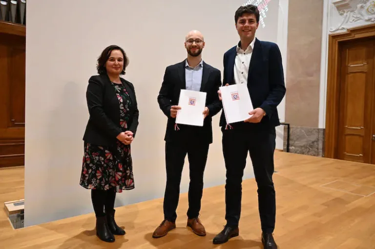 Der mit 10.000 Euro dotierte Preis für eine studentische Initiative geht an Philipp Kremer und Leonard Richter für die Veranstaltung „Vom Symptom zur Diagnose“ an der Philipps-Universität Marburg. Die Studierenden stellen pro Online-Seminar einen anspruchsvollen und exzellent vorbereiteten Patientenfall aus der Fachliteratur oder dem klinischen Alltag vor, um ihn mit den Teilnehmenden zu analysieren und zu lösen. Nach einer ganzheitlichen Anamnese fragen die Studierenden nach sinnvollen Untersuchungsmethoden, teilen ihre Gedanken in Word-Clouds oder markieren auf Bildern vermutete Pathologien. Die realen Fälle bereiten die Preisträger mit erfahrenen Ärztinnen und Ärzten des Universitätsklinikums Gießen und Marburg vor. Die Jury lobt, dass die Medizinstudierenden durch das Lernen am Symptom und frühe Üben von strukturierter Diagnostik und Differentialdiagnosen besser auf den ärztlichen Alltag vorbereitet werden und mehr Sicherheit im Umgang mit Patientinnen und Patienten erlangen.