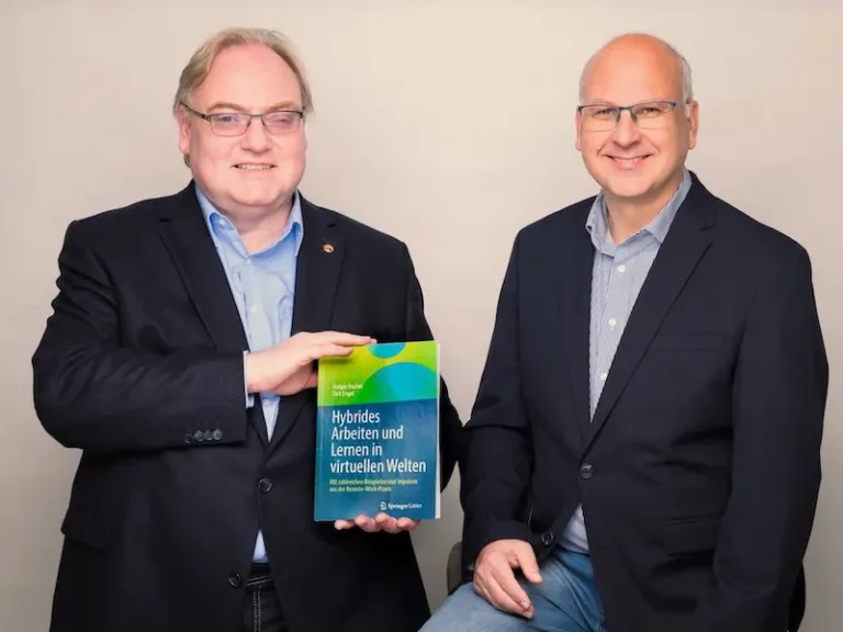 Am 8. Januar 2024 ist das Fachbuch „Hybrides Arbeiten und Lernen in virtuellen Welten“ im Verlag Springer Gabler (Wiesbaden) erschienen. In dem Buch beschäftigen sich die Autoren Holger Fischer und Dirk Engel intensiv mit den Herausforderungen von Homeoffice und Remote Work in der modernen Arbeitswelt. Die von vielen Menschen gesehenen Nachteile von herkömmlichen Video-Konferenz-Tools können durch die Verwendung von virtuellen Welten ausgeglichen werden. Durch den Einsatz digitaler Plattformen, in denen Menschen mit Avataren interagieren können, kann die Kommunikation in der alltäglichen Arbeit und das Lernen für die betriebliche Weiterbildung deutlich verbessert werden. Technologien wie Virtual-Reality-Brillen können das Trainieren von komplexen Tätigkeiten verbessern. Künstliche Intelligenz unterstützt diese Möglichkeiten.