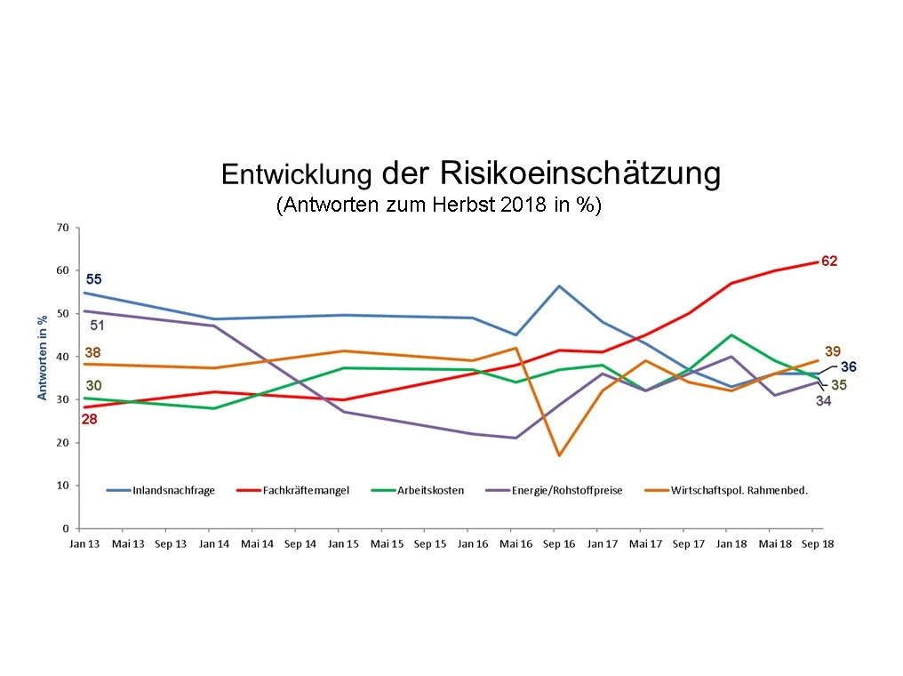 „Ein Fünftel der Betriebe vermeldet, keine Schwierigkeiten bei der Besetzung offener Stellen zu haben. 2017 waren dies noch rund 24 %. Im Durchschnitt