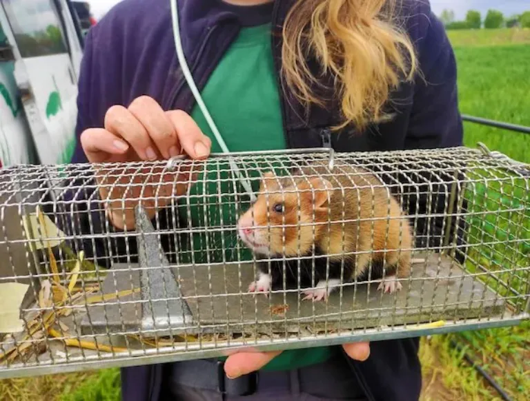 Landkreis Gießen. Die Käfigtür öffnet sich und das pelzige Nagetier erschnuppert den Langgönser Acker, ohne Scheu tapst es auf das vorher präparierte Feld und scheint, noch einen letzten Blick zurückzuwerfen, um dann mit einem beherzten Sprung im Hamsterbau und damit in die Freiheit zu verschwinden – ein Erfolgserlebnis für die AG Feldhamsterschutz, die mit Unterstützung der Abteilung für den ländlichen Raum des Lahn-Dill-Kreises und des Landkreises Gießen insgesamt 21 Feldhamster in ihr neues Zuhause entlassen hat.