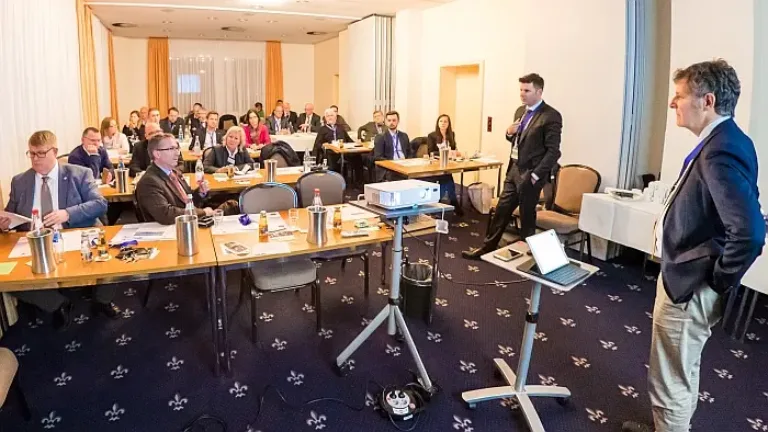 Nach der Begrüßung durch Dr. Lars Witteck, Vorstandsmitglied des Gastgebers, hatten zunächst zwei weitere Fachleute über den Stand und Visionen des Breitband-Ausbaus in Hessen und Mittelhessen berichtet. In Hessen seien zu diesem Zeitpunkt 90 Prozent der Haushalte mit einer Geschwindigkeit von mindestens 30 MBit versorgt, sagte Wolfram Koch, Leiter des Breitbandbüros Hessen bei der Hessen Trade & Invest GmbH (HTAI). Nächstes Ziel sei nun die Gigabit-Allianz, die beim 9. Hessischen Breitbandgipfel am 6. Juni 2018 vorgestellt werde. Martin Rudersdorf vom Landkreis Limburg-Weilburg erläuterte die Ziele der WLAN-Initiative Mittelhessen, die die Region flächendeckend mit über 1.000 Hotspots aufgestellt in Bürgerhäusern, öffentlichen Plätzen oder Schwimmbädern mit schnellem Internet versorgen soll.