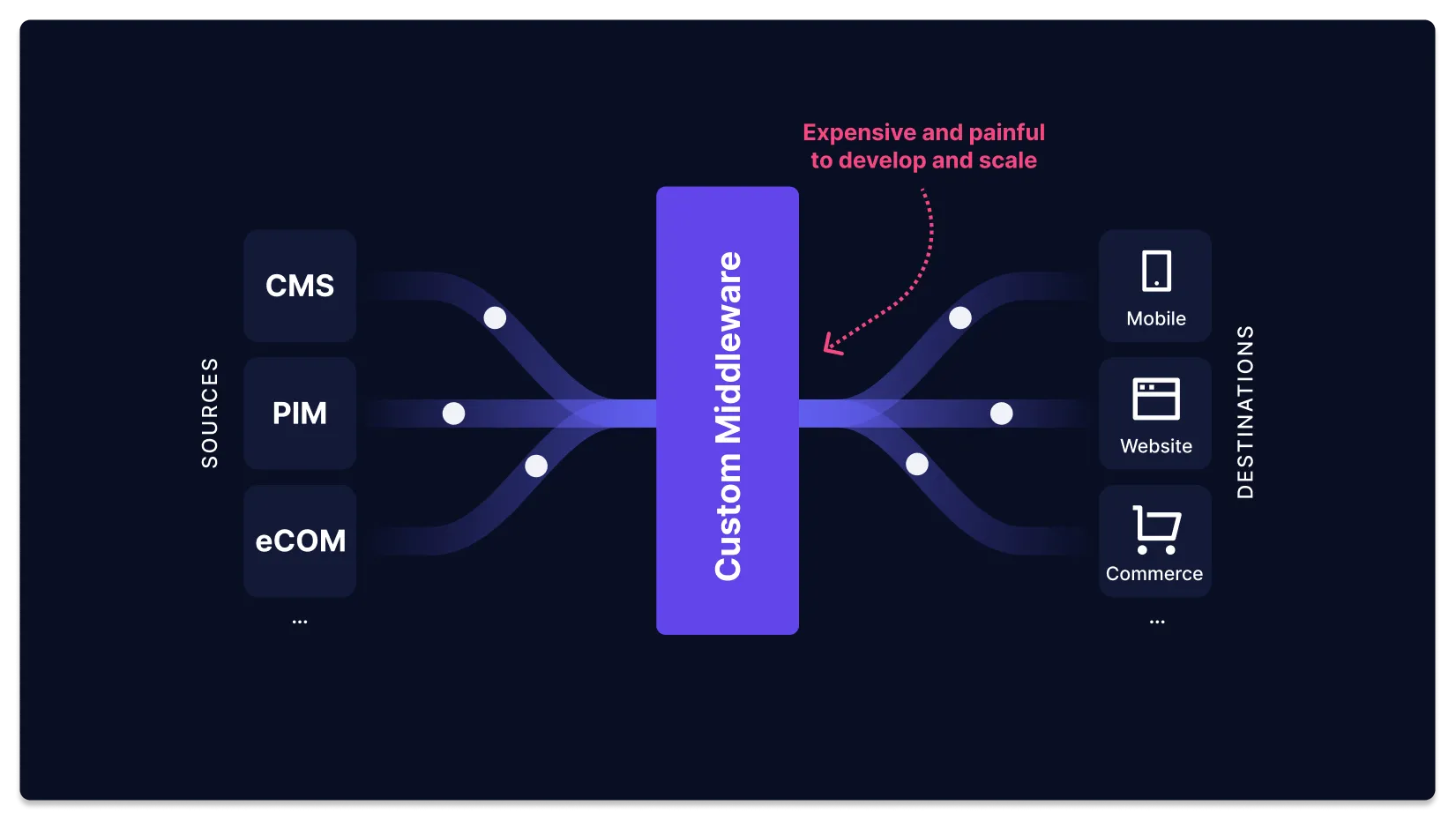Viele Datenquellen, viele Empfangsgeräte, viele Problemherde: Die Implementierung einer Middleware kann Unternehmen weitreichende Probleme machen. (Darstellung: GraphCMS)