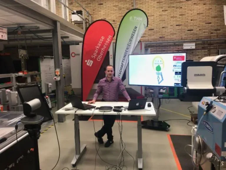 „Wir hatten in der Spitze 127 Gäste im Zoom-Chat“, freut sich Abt nun. Die digitale Ideen-Messe mit elf Ausstellenden lief bereits gut zwei Wochen, als am Sonntagabend das Online-Finale als große Videokonferenz stattfand. Nicht nur die Teams und Ihre Unterstützer sowie die neunköpfige Jury, davon vier Frauen, waren beteiligt. Auch viele Studierende sowie THM-Präsident Prof. Dr. Matthias Willems, Hans-Heinrich Bernhardt als Vorsitzender des Hochschulrates und Jurymitglied Marcus Mietchen, Leiter des Firmenkundengeschäfts bei der Sparkasse Oberhessen als Hauptsponsor, wollten zuschauen, mit welchen Innovationen die jungen Erfinderinnen und Macher um insgesamt 5500 Euro Preisgeld rangen.