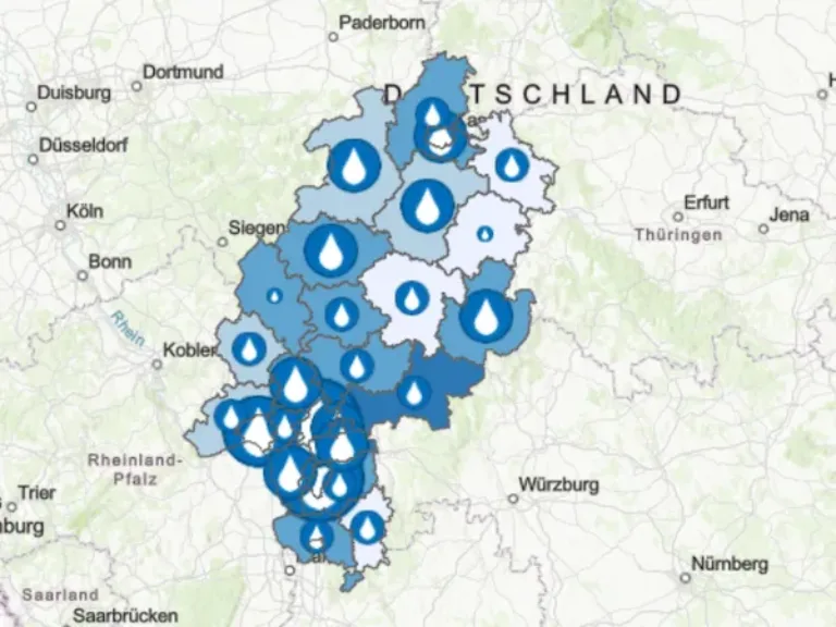 Das Hessische Statistische Landesamt hat ein neues Informationsangebot zur öffentlichen Wasserversorgung in den hessischen Landkreisen und kreisfreien Städten veröffentlicht: Mit der interaktiven Aktionskarte im Hessenatlas können Nutzerinnen und Nutzer für ganz Hessen auf einen Blick erkennen, wie die wichtige Ressource Wasser verteilt ist. Sowohl die absolute Wassermenge als auch die durchschnittliche Abgabe pro Tag und Einwohnerin oder Einwohner können auf Kreisebene mit wenigen Klicks miteinander verglichen werden. So ist leicht zu erkennen, wo in Hessen die abgegebenen Wassermengen besonders hoch oder niedrig sind. Für jeden Landkreis und kreisfreie Stadt lässt sich zusätzlich die Entwicklung der Wasserabgabe im Zeitverlauf von 2001 bis 2019 anzeigen.