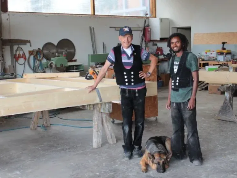 Samuel kam vor drei Jahren aus Eritrea nach Deutschland, lernte die Sprache und machte vor seiner Einstiegsqualifizierung ein Praktikum im Betrieb von Herbert Büttner. Mit seiner Entscheidung für die Ausbildung im Zimmererbetrieb ist er sehr zufrieden.