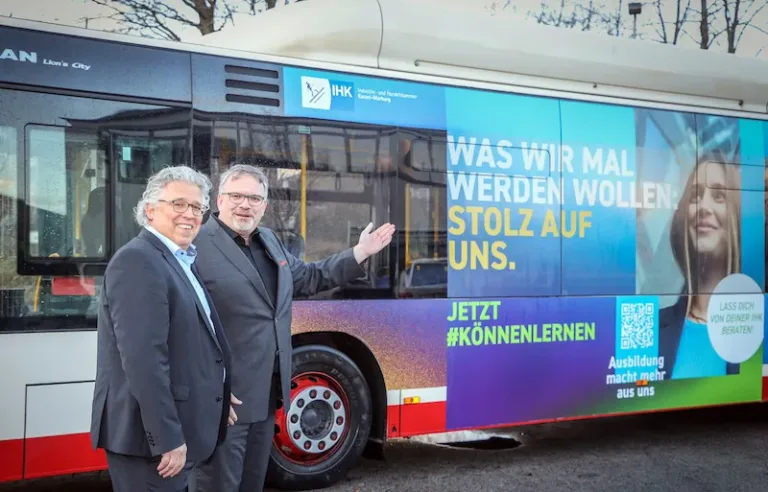 „Als regionale Wirtschaft machen wir die Azubi-Marketingkampagne der IHK-Organisation bekannt. Dabei stehen unsere eigenen IHK-Angebote wie die Bildungsberatung und unser YouTube-Kanal ‚AzuPOV‘ im Mittelpunkt“, unterstreicht der stellvertretende IHK-Hauptgeschäftsführer Oskar Edelmann. „Mit den Stadtwerken Marburg kommt die Kampagne jetzt buchstäblich in Fahrt. Mit dem Bus haben wir einen guten Hingucker, der Jugendliche auf dem Weg zur Schule oder Freunden und auch deren Eltern und Großeltern erreicht.“