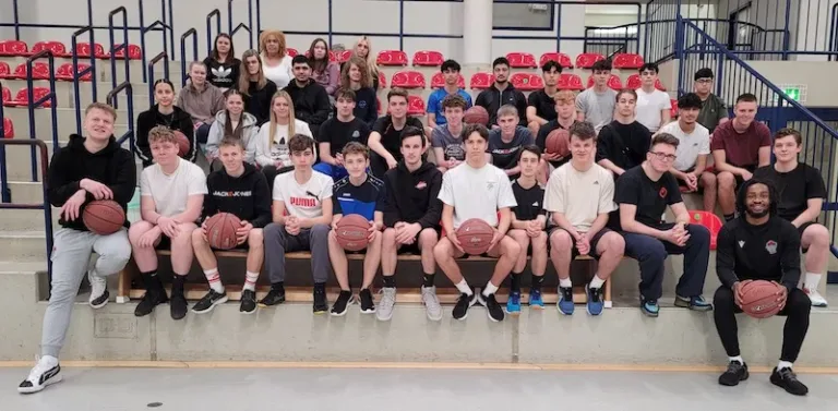 Duane Wilson und Luis Figge, Profis des Basketball-Zweitligisten JobStairs GIESSEN 46ers, gaben in der Sporthalle der Gesamtschule Gleiberger Land in Launsbach bereitwillig Auskunft. Er habe an der Texas A&M University nördlich von Houston und an der Marquette University in Wisconsin gespielt. Ein Agent, dem er vertraue, kümmere sich um seine Belange und suche für ihn stets gute Clubs aus. Und ja, sich als US-Bürger zu verletzen oder krank zu werden, sei teuer, „deshalb bin ich ja auch in Deutschland“, lachte Duane Wilson, der aber einschränkend zugeben musste. „Wenn ich im Sommer zu Hause bin, dann sollte mir möglichst nichts passieren.“
