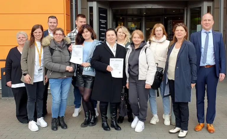 700 Arbeitskräfte suchten die Handelsunternehmen in Limburg-Weilburg im letzten Jahr, 260 Stellen im Verkauf sind aktuell unbesetzt. Zehn Arbeitsuchende aus der Ukraine und eine Kurdin haben sich jetzt auf den Weg gemacht, Verkäufer zu werden. Sie nehmen seit letztem Herbst an einer ,Teilqualifizierung für Verkäufer/innen‘ beim Bildungswerk der Hessischen Wirtschaft (BWHW) teil. Ins Leben gerufen und finanziert wird die Weiterbildung vom Jobcenter Limburg-Weilburg. Elf Frauen und ein Mann nehmen an der Qualifizierung teil, die schrittweise auf eine Beschäftigungsaufnahme und einen Berufsabschluss vorbereitet. Dabei werden die Schulungen von einem Deutschkurs und praktischen Phasen in Unternehmen flankiert. So sei es möglich, die arbeitsuchenden Menschen schnell und praxisnah in Arbeit zu integrieren, zunächst auch ohne vollwertigen Berufsabschluss, der zu einem späteren Zeitpunkt, sofern alle fünf Module der Teilqualifizierung absolviert wurden, erworben werden kann. Notwendig sei dies jedoch nicht, so die Praxiserfahrung des BWHW. „Die wichtigsten Fähigkeiten und Kenntnisse können in den ersten beiden Modulen erworben werden, so dass bereits nach ca. 6 Monaten eine Arbeitsaufnahme gut möglich ist. Dies bietet den Vorteil für die Teilnehmenden, schnell in Arbeit zu kommen, was vielen sehr wichtig ist“, macht Karin Motzkuhn Projektleiterin des BWHW Limburg klar.