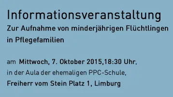 Informationsveranstaltung findet am Mittwoch, 7. Oktober 2015,18:30 Uhr, in der Aula der ehemaligen PPC-Schule, Freiherr vom Stein Platz 1, in Limburg