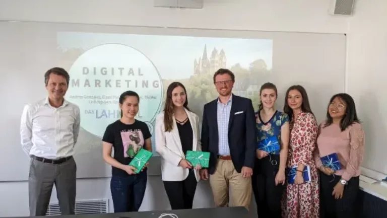 Unter Leitung vom Prof. Dr. Jan Freidank vom Fachbereich Wirtschaft übernahmen fünf Studentinnen des Master-Studiengangs International Marketing für 8 Wochen zwischen Mai und Juli 2022 den Instagram Account www.instagram.com/daslahntal und erstellten einen virtuellen Reiseführer für Reiseziele im Lahntal und die Naturaktivitäten Radwandern, Kanufahren und Wandern. Parallel dazu wurden insgesamt 8 Blogbeiträge auf der neuen Homepage www.lahntalliebe.de veröffentlicht und mit dem Social-Media-Kanal verknüpft.