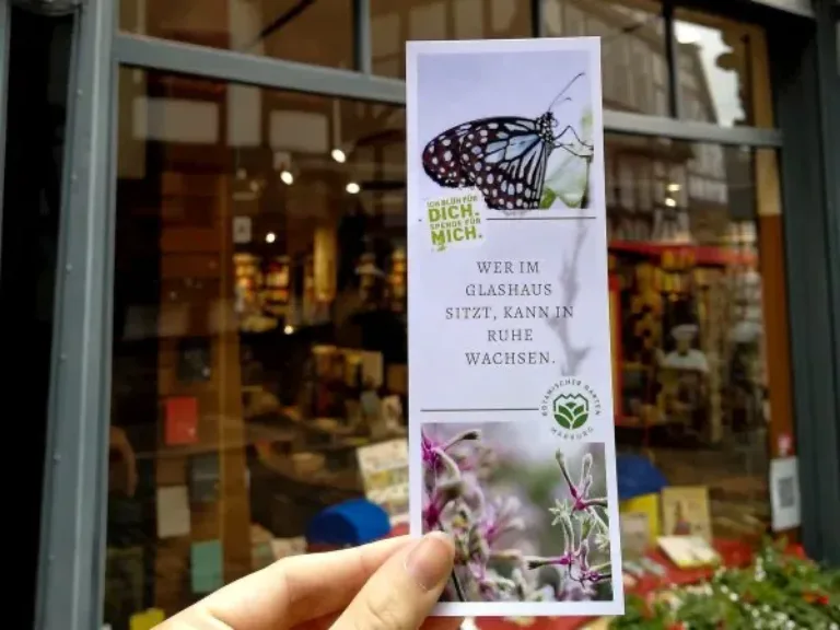 Immer mehr Marburger Unternehmen unterstützen die Kampagne „Ich blüh für dich. Spende für mich“ zur Sanierung der Gewächshäuser im Botanischen Garten der Universität Marburg. Seit Mitte September können sich Besucherinnen und Besucher der Einzelhändlerinnen und Einzelhändler in der Marburger Oberstadt zum Beispiel über kostenfreie und eigens für den Botanischen Garten gestaltete Lesezeichen freuen. Weitere Aktionen in der Marburger Innenstadt sind in Planung, für die sich weitere Marburger Händlerinnen und Händler sowie Gastronomie-Betreibende engagieren können.