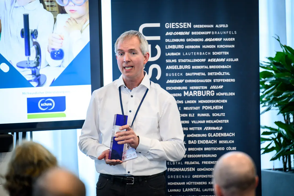 Auch wenn alle Teams echte Vorbilder für gelungene MINT-Bildung in Mittelhessen darstellen, konnte nur eins gewinnen. Das Rennen machte das Schüler:innen-Forschungszentrum Mittelhessen aus Marburg. 2023 gegründet und schon jetzt ein echter Treiber für außerschulisches MINT-Lernen ab der 7. Klasse: Ziel des SFM ist die Nachwuchsförderung im MINT-Bereich, um junge Talente für wissenschaftliche oder technologische Berufe zu gewinnen und gesellschaftliche Herausforderungen wie Klimawandel und Ressourcenschonung zu bewältigen. Angeboten werden individuell abgestimmte Formate wie forschungsorientierte Projektarbeit, Wettbewerbsbetreuung, themenspezifische Workshops oder ein MINT-Sommercamp.