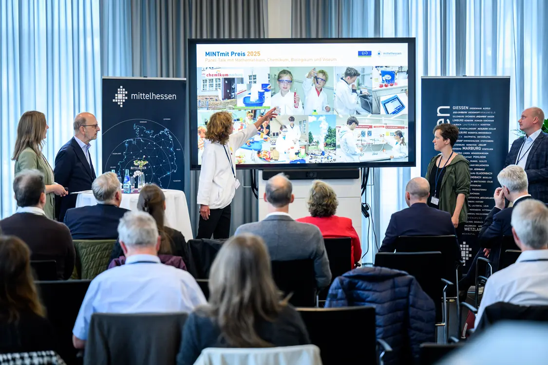 Wie dies in Mittelhessen nachhaltig gelingen kann, besprachen vier weitere MINT-Bildungsorte in einer Talkrunde: das Chemikum Marburg, das Biologikum Mittelhessen, das Viseum Wetzlar sowie das Mathematikum Gießen. Zusätzlich stellte sich das mittelhessische MINT-Cluster „MINTmit“ vor, bestehend aus den Partnern THM, Landkreis Gießen und Regionalmanagement Mittelhessen. Es vereint mittlerweile über 120 regionale Netzwerkpartner.
