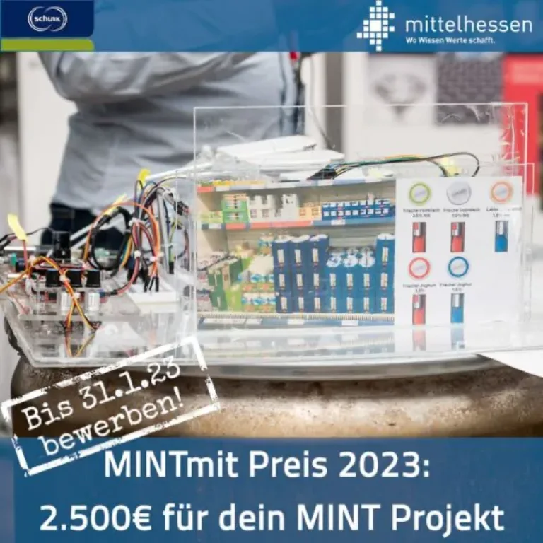 Die MINT-Fächer spielen eine wichtige Rolle, um die Herausforderungen der Zukunft zu meistern. Klimawandel, Ressourceneinsatz oder Gesundheitssicherung sind genauso Schlüsselfelder wie Bio- und Umwelttechnologien. Wir wollen mittelhessische Projekte oder Initiativen auszeichnen, die MINT vermitteln oder dazu motivieren. Willkommen sind gute Beispiele, die möglichst leicht von anderen umgesetzt werden können. Die Projekte sollen auf einem nachhaltigen Konzept basieren, kooperative Ideen werden begrüßt. Ideal ist ein Bezug in unsere Region, Projekte aus Mittelhessen und solche ohne finanzielle Unterstützung werden bevorzugt behandelt.