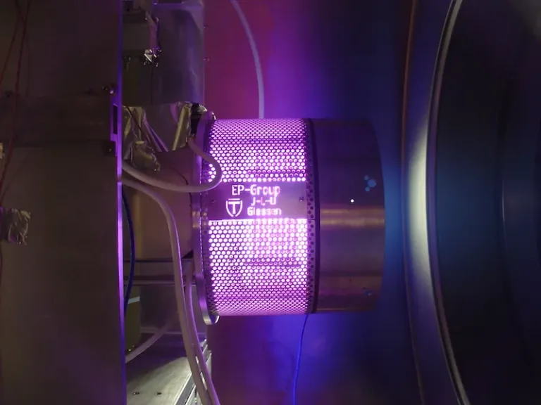 Ein bemannter Flug zum Mars oder andere ehrgeizige Raumfahrtmissionen werden durch die Möglichkeiten elektrischer Raumfahrtantriebe erleichtert oder technologisch überhaupt erst realisierbar. Die Entwicklung elektrischer Raumfahrtantriebe (Electric Propulsion, EP) schreitet derzeit rasch voran, auch beflügelt durch eine rasante Kommerzialisierung der Raumfahrt. Um den sicheren Betrieb von EP-Systemen im Weltraum zu gewährleisten, ist der Aufbau hochmoderner Instrumente zum Test und zur Qualifizierung solcher EP-Systeme dringend erforderlich. In dem Verbundprojekt „Ref4EP: Referenztriebwerke und Diagnosestandards für elektrische Raumfahrtantriebe für Kleinsatelliten“ unter Federführung der Justus-Liebig-Universität Gießen (JLU) soll eine Standard-Testanlage für elektrische Raumfahrtantriebe entwickelt werden, mit denen diese auf der Erde für den Weltraum getestet werden können – eine Art TÜV für diese Antriebe. Das Bundesministerium für Wirtschaft und Klimaschutz (BMWK) fördert das Verbundprojekt von November 2023 bis April 2025 mit rund 668.000 Euro, von denen rund 344.000 Euro auf das Teilprojekt an der JLU entfallen und rund 35.900 Euro auf das Teilprojekt an der ebenfalls beteiligten Technischen Hochschule Mittelhessen (THM).