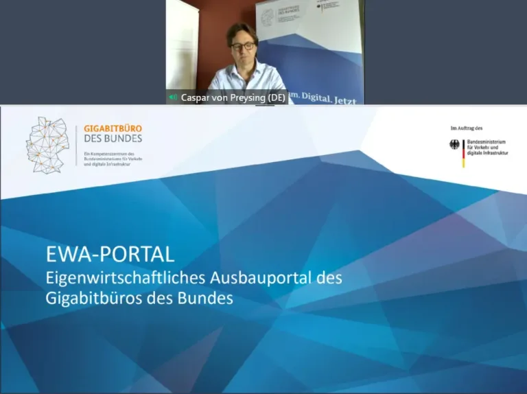 Auf dem Panel sprach Caspar Preysing – Leiter des Gigabitbüro des Bundes – zum Thema EWA-Portal und den Workshopangebote. Das EWA-Portal ist zentrale Anlaufstelle zur Kontaktaufnahme vom Netzbetreiber zur Kommune für den eigenwirtschaftlichen Ausbau digitaler Infrastrukturen. Die Profilübersicht zeigt dabei kompakt interessierte Kommunen für den Netzausbau auf. Das Gigabitbüro des Bundes bietet ein umfangreiches Workshopangebot zu aktuellen und relevanten Themen rund um den Gigabitausbau an, das für kommunale Vertreter komplett kostenfrei ist. Weitere Infos und Erstellung eines Kommunen-Profils über: Eigenwirtschaftliches Ausbauportal – Gigabitbüro des Bundes (gigabitbuero.de)