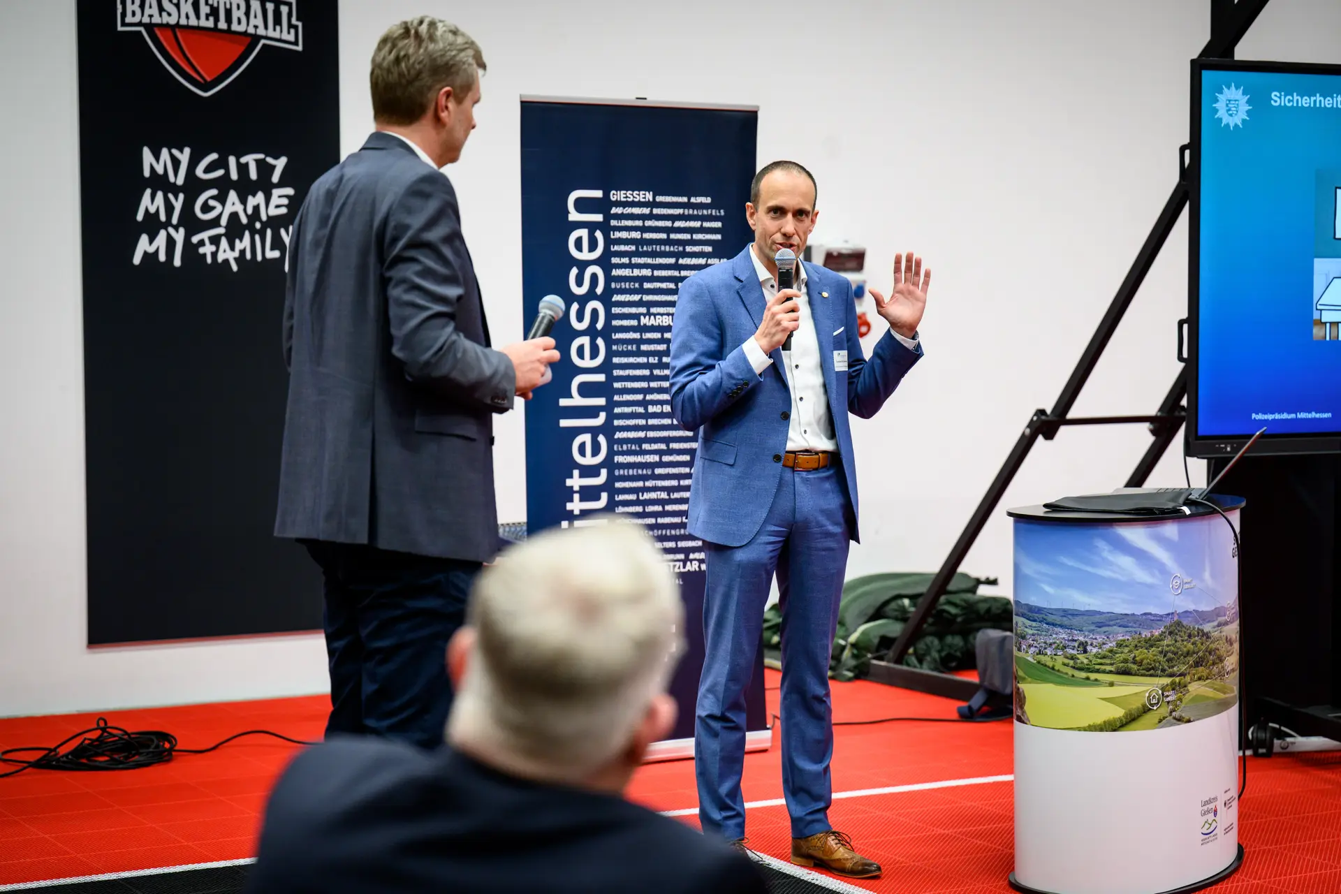 Bevor das BERD dann vollumfänglich erkundet werden konnte, erfolgte noch eine Vorstellung. Das innovative Lern-, Tagungs- und Bewegungszentrum in Lich Eberstadt bietet auf 730 qm einzigartige Möglichkeiten für Bewegung, Erleben, Reden und Denken. Realisiert vom Landkreis Gießen, der Hand & Werk GmbH und dem Lich Basketball e.V., umfasst es eine digitale Werkstatt, moderne Trainingsbereiche und Konferenzräume.