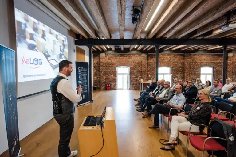 Eine andere Erfolgsgeschichte aus der Region ist das Wetzlarer Logistik-Unternehmen weLOG GmbH, das seit seiner Gründung im September 2019 ein starkes Wachstum verbuchen konnte. Gründer und Geschäftsführer Manuel Rupp erzählte im Vortragssaal des Mathematikums von seiner Vision eines kundenorientierten Lösungsansatzes und deren Umsetzung. weLOG ist ein internationaler Anbieter für Logistik, Fullfillment und E-Commerce, der seinen Kunden, darunter Schwergewichte wie Lufthansa und Outfittery und CLS Behring, maßgeschneiderte Dienstleistungen anbietet, deren Tiefe der Kunde bestimmen kann. Das brachte dem Unternehmen nicht nur zahlreiche Preise ein, sondern stellte es auch vor Wachstum-bedingte Heruasforderungen. Noch in diesem Jahr eröffnet weLOG eines der modernsten Fullfillment-Center Europas in der Nähe von Berlin.