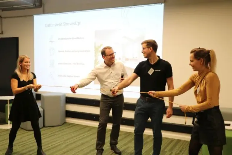 Mitarbeiter der Fabrik19 nach dem offiziellen Teil der Eröffnung: Die rund 120 Gäste konnten live erleben, wie eine App konfiguriert wird, erhielten