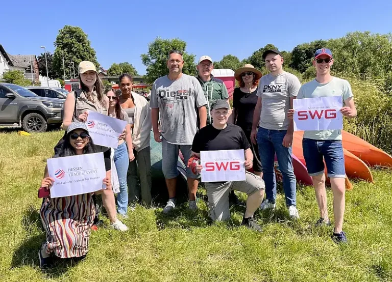 Bei sonnigem Wetter erkundeten die nationalen und internationalen Newcomer bei einer Paddeltour von Gießen nach Lahnau ihre neue Heimat Mittelhessen.Sie hatten riesigen Spaß, gemeinsam die Region auf der Lahn zu erkunden und sich untereinander zu vernetzen. Begleitet wurde die Tour von Petra Stuhlmann (Wirtschaftsförderung der Stadt Gießen) und Christian Bernhard (IHK Lahn-Dill).