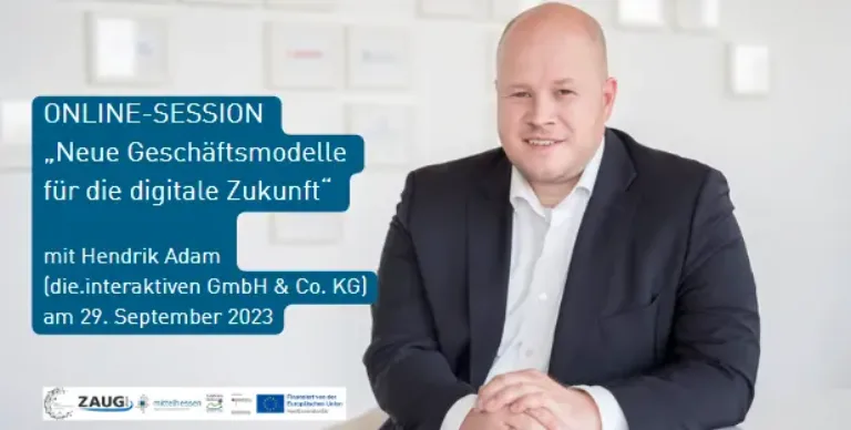 Die Veranstaltung „Neue Geschäftsmodelle für die digitale Zukunft“ wird am Freitag, 29. September 2023 von 14.00 Uhr bis 15.30 Uhr in einer Online-Session der „Digitalen Weiterbildungsverbünde Mittelhessen“ angeboten. Hierzu laden die ZAUG GmbH und das Regionalmanagement Mittelhessen alle Interessierten herzlich ein. Wir bitten Sie zwecks besserer Veranstaltungsplanung um Anmeldung für die kostenfreie Veranstaltung auf die E-Mail-Adresse dwv@zaug.de bis zum 20. September 2023 und freuen uns über Ihre Teilnahme! Die Teilnehmenden erhalten wenige Tage vor der Veranstaltung einen Link für Ihre Teilnahme an unserem Event.