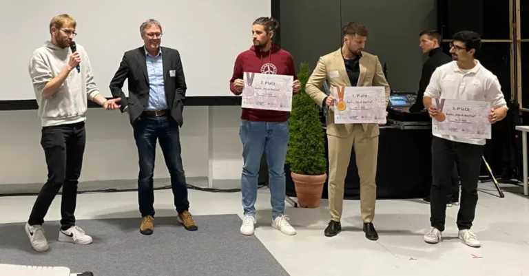Nach der Verkündung der Sieger, überreichten Benjamin Stuchly und Dr. Detlef Terzenbach die Preisgelder und Urkunden. So durften sich Studyquick über 1.000 Euro freuen, während Mertschuweiter mit 500 Euro den zweiten Platz belegte und Clever Sole sich mit 300 Euro ebenfalls auf dem Podest einreihte.