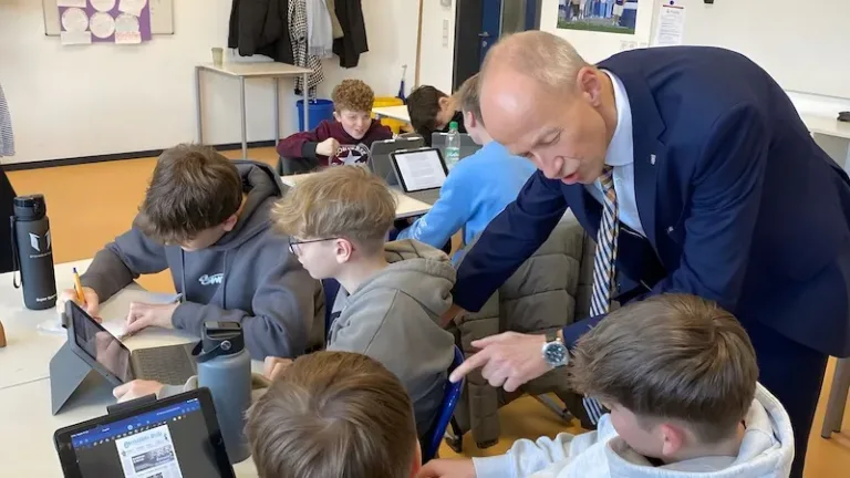 Der Minister für Kultus, Bildung und Chancen, Armin Schwarz, hat heute die Steinmühle – Bilinguale Grundschule, Gymnasium in Trägerschaft von Steinmühle Marburg e.V. besucht, um sich über die dortige Arbeit zu informieren. Im Mittelpunkt des Besuchs standen die Möglichkeiten und Herausforderungen des Privatschulbetriebs. „Die Vielfalt an Bildungsangeboten, die freie Schulen wie die Steinmühle präsentieren, ist einer unserer wichtigen Impulsgeber für Innovation in unserem Bildungssystem. Ich danke allen Beteiligten der Steinmühle für den spannenden Austausch“, äußerte Schwarz.