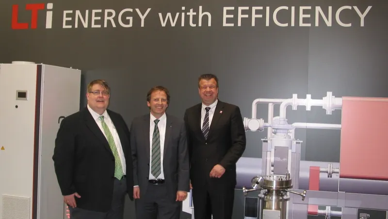 Intensive Gespräche führten die Abgesandten des mittelhessischen Regionalmanagements mit Dr. Dirk Pieler von der Firma Bender (Grünberg), Dr. Wolfgang Lust von LTi (Lahnau, siehe Bild) und Friedhelm Loh von Rittal/Friedhelm Loh Group (Herborn/Haiger). Die Unternehmer sind vor allem vom Thema der Fachkräfte-Gewinnung bewegt. Am ersten Messetag ist „viel Binnen- und politischer Dialog“ an der Tagesordnung, so Dr. Lust, der auf der Messe sein Produktportfolio präsentierte.