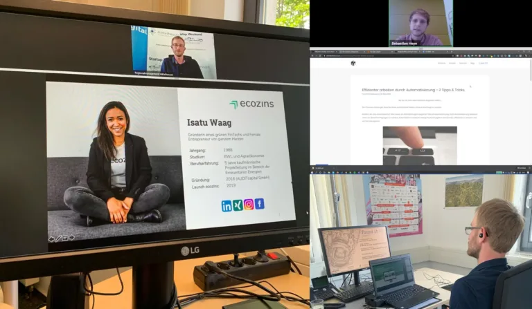 ecozins-Gründerin Isatu Waag machte den Auftakt mit einem Einblick in ihre Laufbahn und die Herausforderungen für sie persönlich in dieser Zeit. „Man macht einen Sprint und dann kommt jemand und stellt einem ein Bein“, so erklärt Waag die Corona-Krise. Als besonders problematisch beschrieb sie, dass Gründer nun keinen Einfluss mehr haben, welches dem Gründungsgedanken widerspricht und ein Gefühl von Ohnmacht erzeugen kann. Auch ihr fiel es anfangs schwer, optimistisch zu bleiben. Das 100% digitale Geschäftsmodells bot eine gute Basis, um „wie gewohnt“ weiterzuarbeiten, doch wie funktioniert das in der Realität?