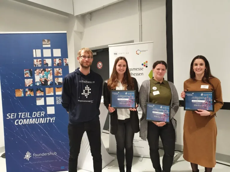 Am Ende durfte sich Hemp-Garden über den ersten Platz freuen. Dicht gefolgt von TecLex (2) und unicake (3). Die Preisgelder in Höhe von 1.000 Euro wurden vom Regionalmanagement Mittelhessen überreicht und im Rahmen der EU- EFRE Förderung „Digitalisierung-Gründung-Innovation in Mittelhessen“ gestiftet. Wir wünschen den Teams viel Erfolg für den weiteren Weg!