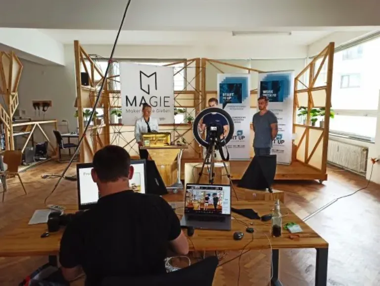 Abschlussveranstaltung, die live von der Pitch-Bühne aus dem Makerspace MAGIE in Gießen
