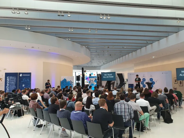 Die Veranstaltung wurde von Dr. Raoul Haschke moderiert, der die Teilnehmer*innen mit einem spannenden Stein-Schere-Papier-Turnier in Stimmung brachte. Dr. Mandy Pastohr vom hessischen Wirtschaftsministerium eröffnete das Event und sprach über das Gründen in Hessen, die verschiedenen Unterstützungsprogramme und bedankte sich beim Regionalmanagement für die Organisation der Veranstaltung.Ein besonderer Höhepunkt war der sehr persönliche Vortrag von Eirin Rapti, der den Teilnehmer*innen einen Einblick in ihre Gründung geboten hat. Dabei teilte sie ihre eigenen Erfahrungen zum Thema Mental Health und Gründung und bot eine sehr ehrliche Perspektive auf ihre Erlebnisse, die viele Zuhörerinnen und Zuhörer berührte. Darüber hinaus erhielten die Teilnehmer praktische Tipps, darunter eine Einführung in Business Canvas, eine strukturierte Methode zur Entwicklung von Geschäftsmodellen, von Corinna Haas.Ganze 22 Pitches gab es am Abend, von denen einige spontan entstanden waren. Schließlich wurden zehn Projekte ausgewählt, darunter unter anderem Social Startups oder auch KI-basierte Produktentwicklungen für die Automobilindustrie.Jens Ihle, Regionalmanagement Mittelhessen, resümierte: „Heute haben wir wahnsinnig viel Energie verspürt. In Mittelhessen gibt es viele Talente mit guten Ideen. Heute trafen diese Ideen auf Unternehmen, Investoren, Experten und Unterstützerinnen und Unterstützer. Wir glauben daran, dass das Event immer mehr zum festen Bestandteil des Innovationsökosystems wird.“