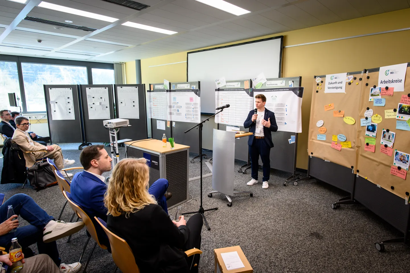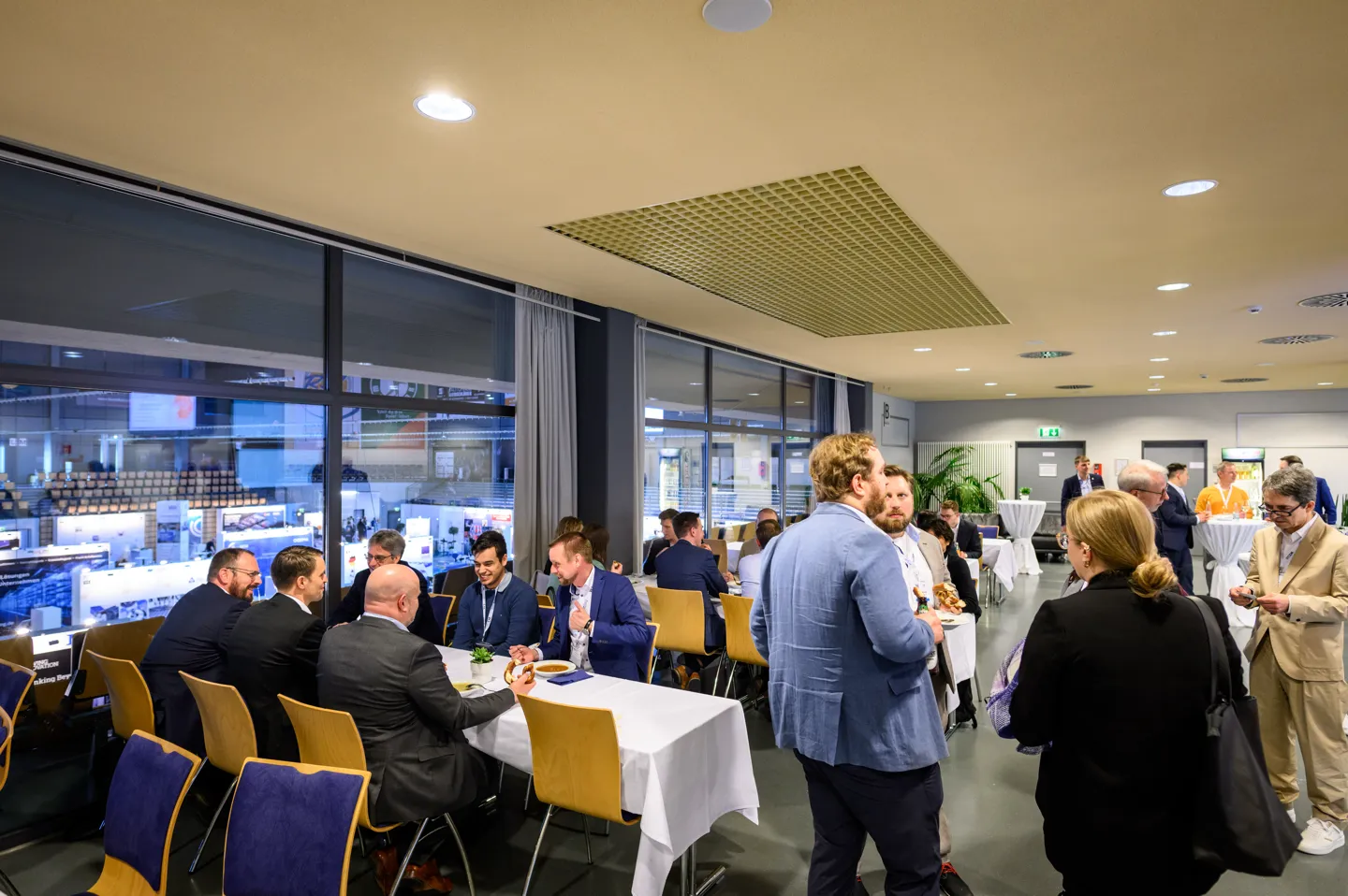 Perfekte Gelegenheit zum Netzwerke:Beim anschließenden Netzwerken wurden in kleinen Gruppen noch lange und intensiv verschiedene Aspekte der Transformation diskutiert und neue Kontakte geknüpft. Hier, wie bereits zuvor in den Workshops, zeigte sich, wie wichtig es ist, Automobilzulieferern in Mittelhessen eine gemeinsame Plattform zu bieten, um mit anderen Unternehmen ins Gespräch zu kommen und gemeinsam erfolgreich die Transformation zu gestalten.