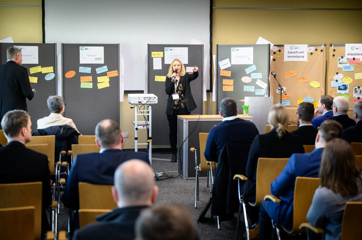 Konzentrierte Workshops zu TransformationIm zweiten Teil der Veranstaltungen gab es drei Workshops, die sich mit den Schwerpunktthemen Technologie, Qualifizierung und Netzwerkstruktur beschäftigten. Hier konnten die Teilnehmenden ihre Erfahrungen mit TeamMit reflektieren, neue Impulse geben und gemeinsame Ziele für die Zukunft formulieren. Die Ergebnisse warfen ein erfreuliches Bild auf die Arbeit von TeamMit. Dabei sind neben vielen Details insbesondere zwei Aspekte festzuhalten: Auf der einen Seite wurde der klare Wunsch formuliert, die Arbeit von TeamMit zu vertiefen und zu intensivieren. Auf der anderen Seite herrschte große Einigkeit darüber, dass es wichtig sei, eine dauerhafte Struktur für das Transformationsnetzwerk zu etablieren und die dafür notwendige Finanzierung zu sichern. Die Vertreterinnen und Vertreter der Unternehmen betonten, dass es wichtig sei, die Transformation mit einem Unterstützungsangebot zu begleiten, wie es mit TeamMit bereits verankert sei. „Nicht alle müssen bei den konkreten Projekten mitmachen, aber alle sollten die Chance haben von den Erkenntnissen zu profitieren“ brachte es ein Vertreter auf den Punkt.